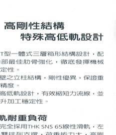 •主結構採用高質量之鑄鐵,組織均勻,底座採用T型一體式三層箱型結構設計,內部以肋骨強化提升剛性、