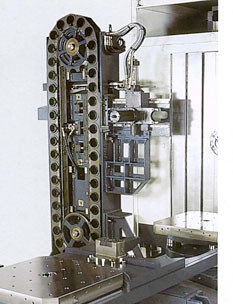 • 換刀機構:使用油壓排齒式之設計,架構簡便,空間足夠易於異常時修護。