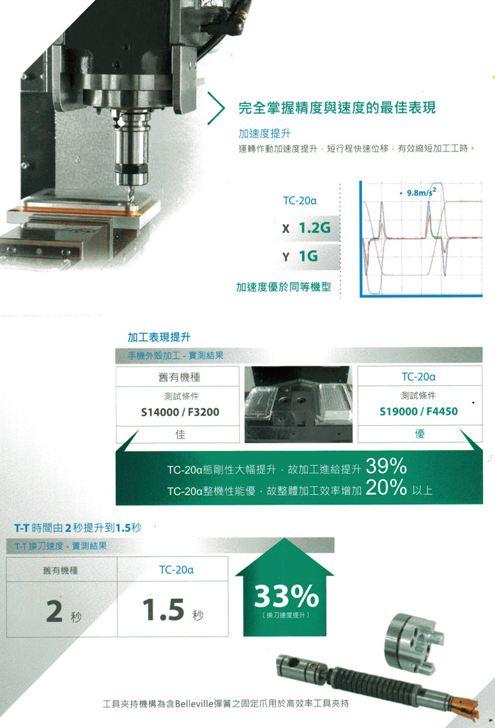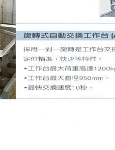 0.001°分割定位工作台、工作量測、高速主軸:12000rpm~24000rpm/HSK-63。 |